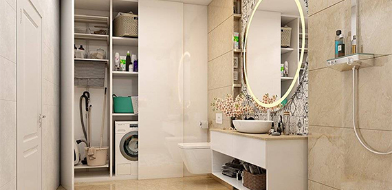 Toilets & Utility area: Non-skid Ceramic floor tiles of size 300 x 300 mm.